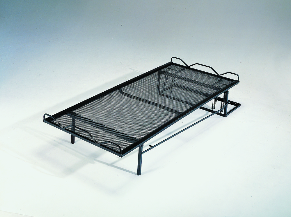 Dit bed is voorzien van speciale trekveren en mechanisch uitklapbare poten, waardoor u het bed zonder enige moeite kunt uit- en opklappen. De kleur is standaard in de kleur zwart maar leverbaar in verschillende kleuren. Dit bed dient aan de vloer of aan de muur bevestigd te worden. (De maximale te gebruiken matrasdikte is 18 cm.) Dit opklapbed is ideaal om van een eigen ombouw te voorzien. De lighoogte exclusief de matras is 34 cm.